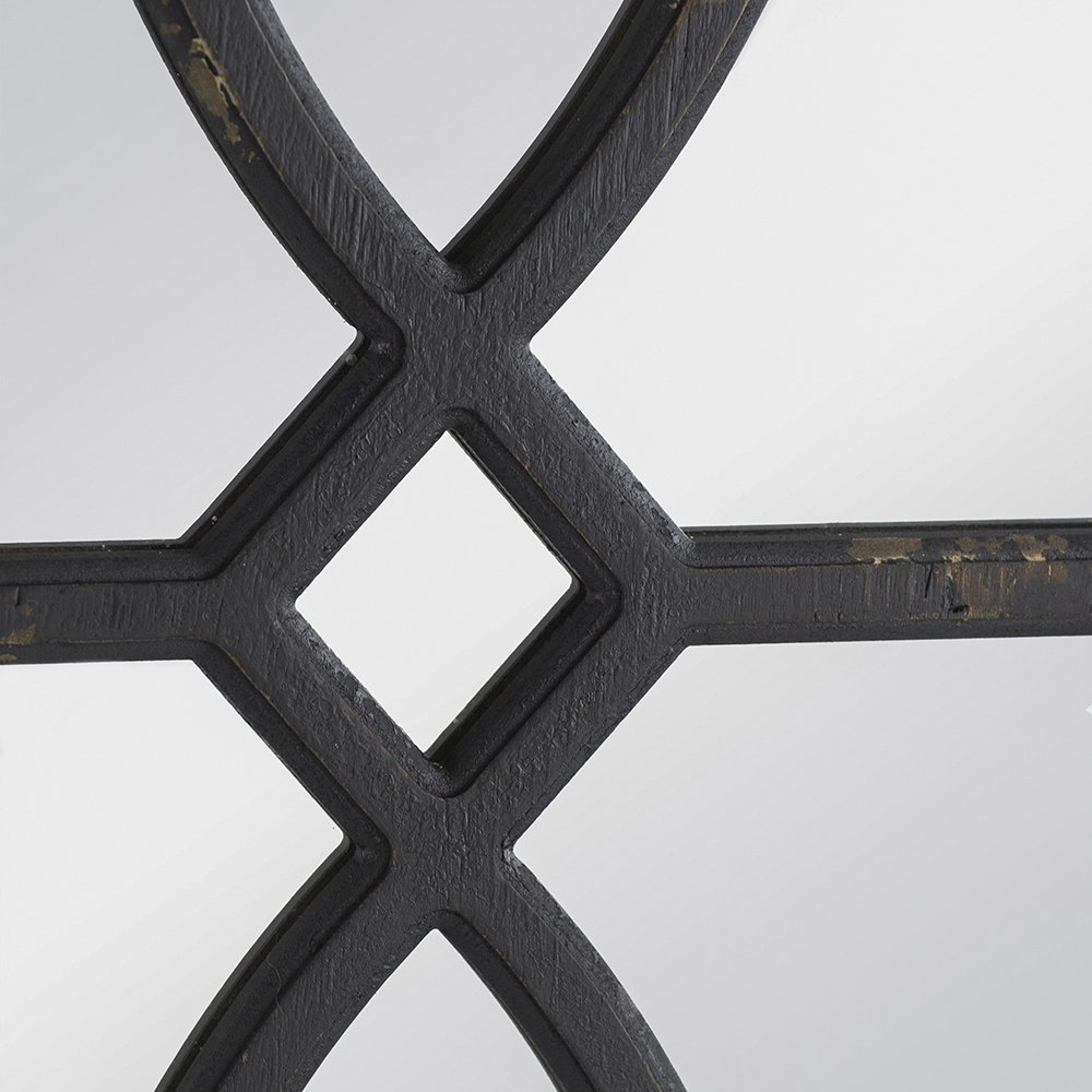 This set of two carved accent mirrors is sure to capture the gaze of your guests with their intricate curved motifs and distressed black finish. Whether they are displayed as a pairing or separated, the unmatched blend of modern and rustic charms will embellish the decor in your entryway, living room, foyer, or bedroom.
