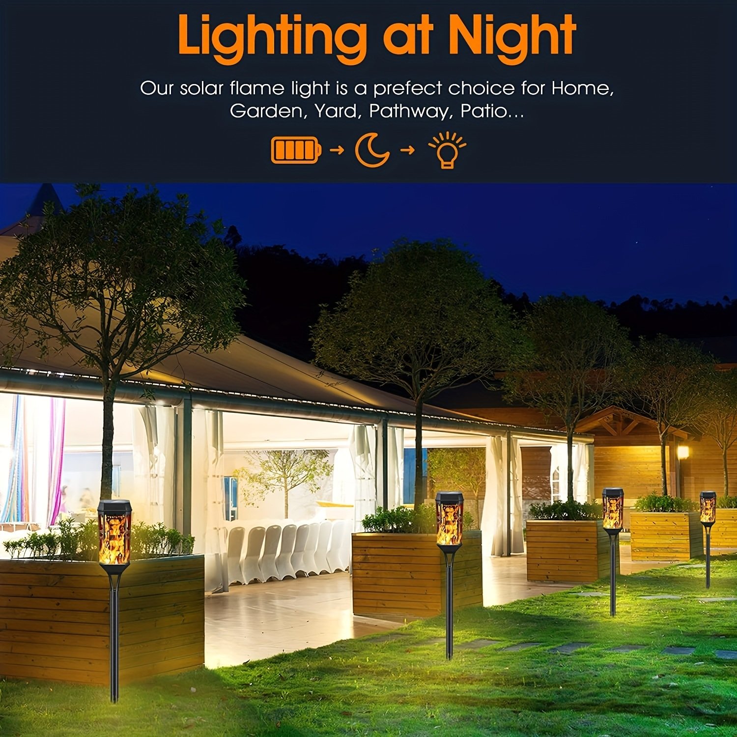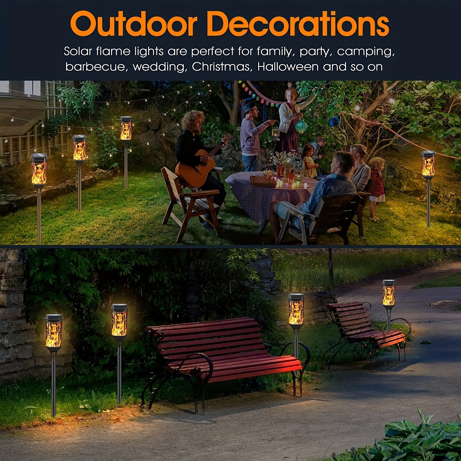 [Dancing Flame Design]12LED[Solar Powered][Weather Resistance][ Easy To Install][IP65 Waterproof ABS Material]