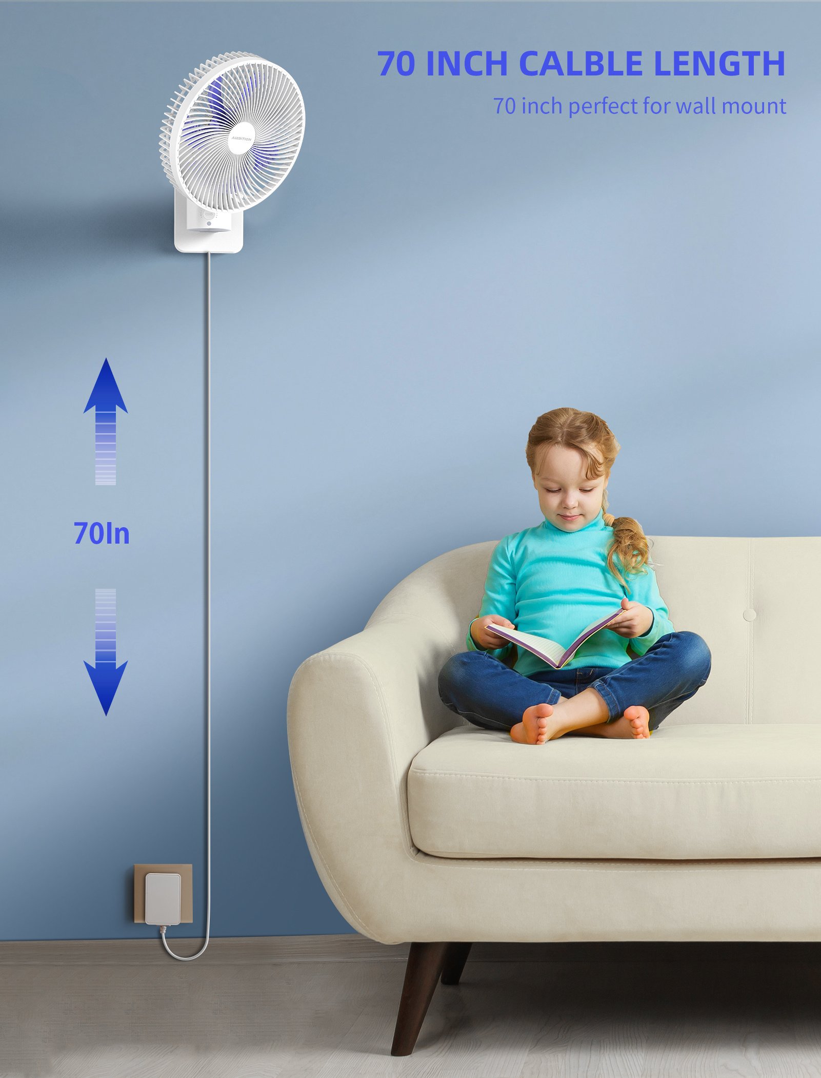 Convenient Control: Track the ambient speed; mode; timer; and oscillation with the remote from 20ft away as you relax on the couch or bed. The 8-inch fan for bedroom comes with 70" cord; making it easy to reach any of your home's plugs.