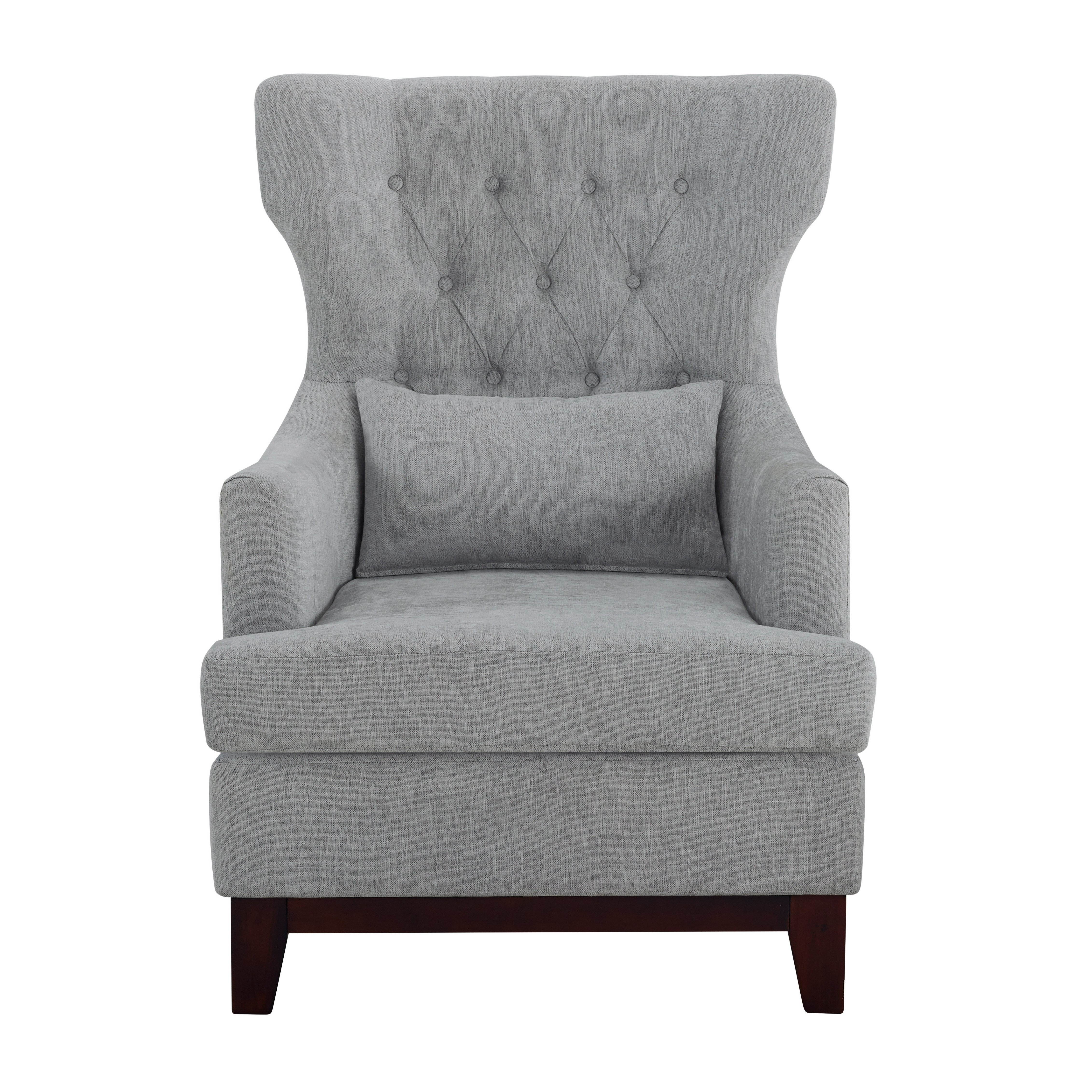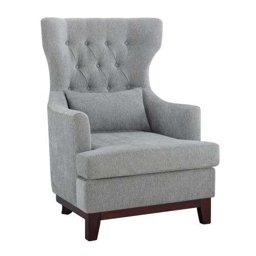 The visual and textural statement of the elegant Adriano Collection lends distinct accent to your home's decor. Wing-backed, as a nod to traditional form, and covered in light gray fabric, the chair features nailhead accent and button-tufting further enhancing the tailored styling.PRODUCT DIMENSIONS: Overall Dimension: 32" x 33.5" x 46"HSeat Width: 22.5"Seat Depth: 27"Seat Height: 19.5"Arm height: 26"Pillow dimension: 20.25"x 11.75" (1)Listing Includes: One Accent Chair Only.Simple Assembly Require.