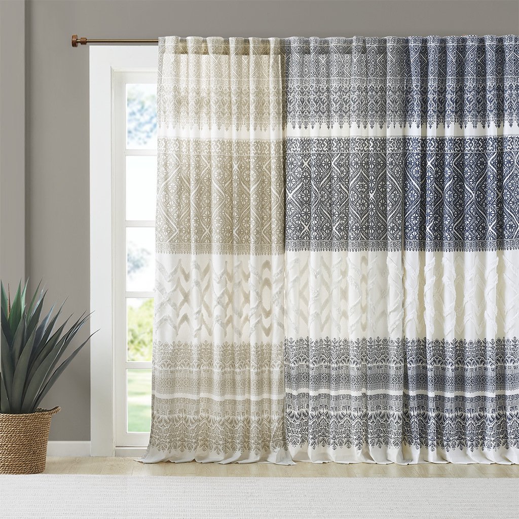 The INK+IVY Mila Cotton Printed Window Panel with Chenille Detail and Lining gives your home decor a chic boho touch. This natural white cotton window panel features an intricate global inspired print combined with rich tufted chenille detailing, for a textured artisanal look and feel. A lightweight white cotton lining on the reverse softly filters light, while providing better drapability and added privacy. In addtition, this 100% cotton curtain panel is also OEKO-TEX certified, meaning it does not contain any harmful substances or chemicals for the best in quality comfort and wellness. Each panel is finished with a rod pocket top for easy hanging, and back tabs for a more clean and tailored finish. This window panel is sold as a single and 2 window panels must be purchased to cover any standard size window. Complete the look with coordinating bedding sets, available and sold separately.