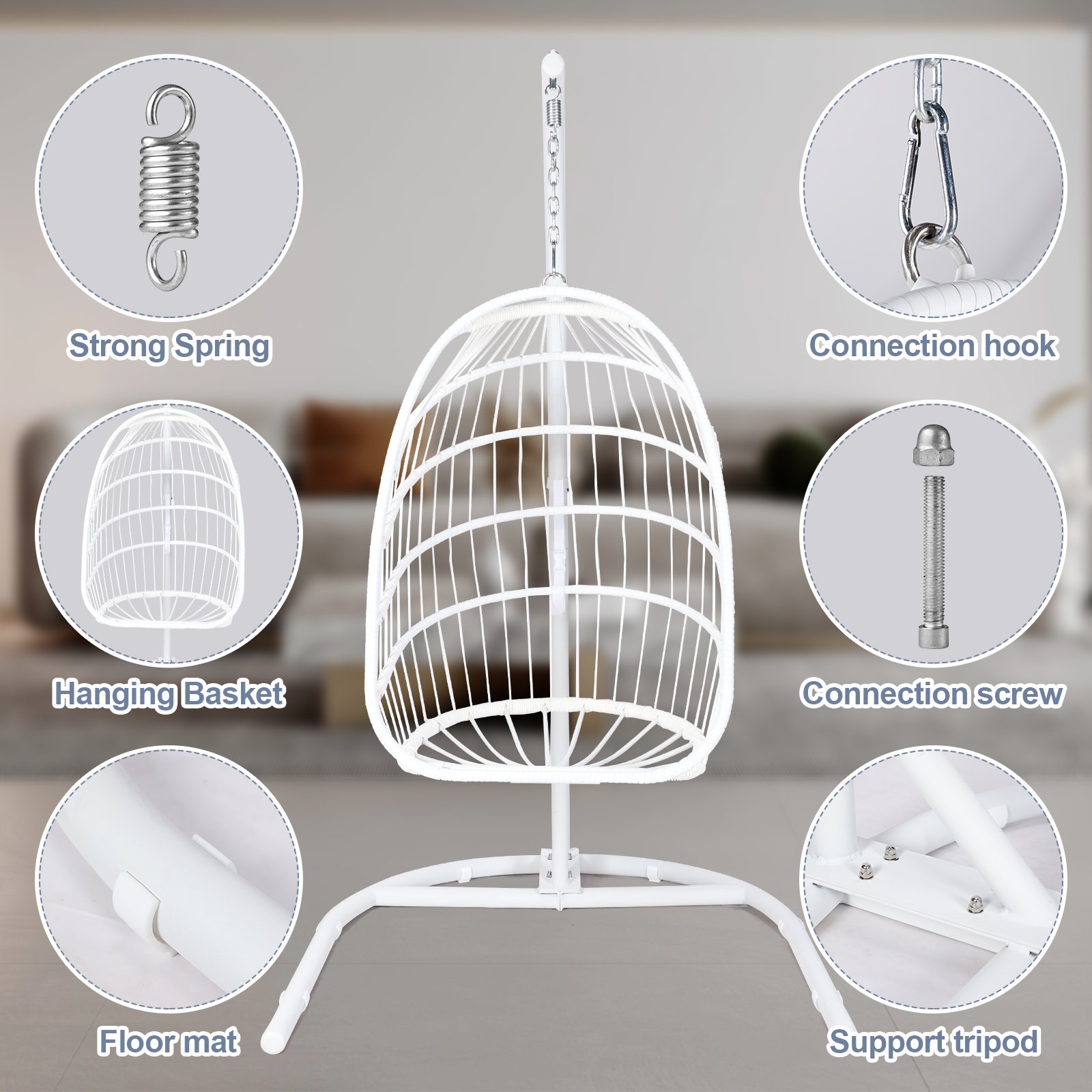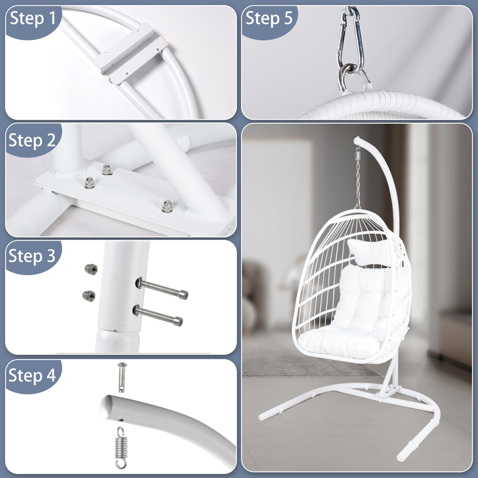 3.Easy to assemble: Our hanging egg chair with stand is very easy to install, including detailed installation instructions and necessary tools. Just follow the instructions and illustrations and you can enjoy the hanging chair with ease. Excellent customer service saves you from worrying about missing and damaged parts. Please contact us with any questions