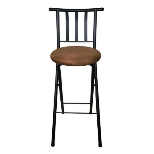 Curate your eat-in kitchen, rec room or home entertainment space with the 29" Metal Folding Stool with Slat Back and Microfiber Seat. Crafted of steel, this barstool offer more than just a sturdy place to sit. The transitional design adds timeless sophistication and modern detail to your kitchen island or table. Folding legs increase the longevity and functionality by allowing you to display or fold away when the occasion is suitable. Boasting both style and comfort, the seat feature a foot rest and a round foam cushioned seat upholstered in a neutral tone. The metal, slat back displays a modern feel and pulls the look of your kitchen or bar area together. Supports up to 300 lbs. Constructed of metal and microfiber fabric and measures 40.2"H x 18.7"W x 16.9"D.