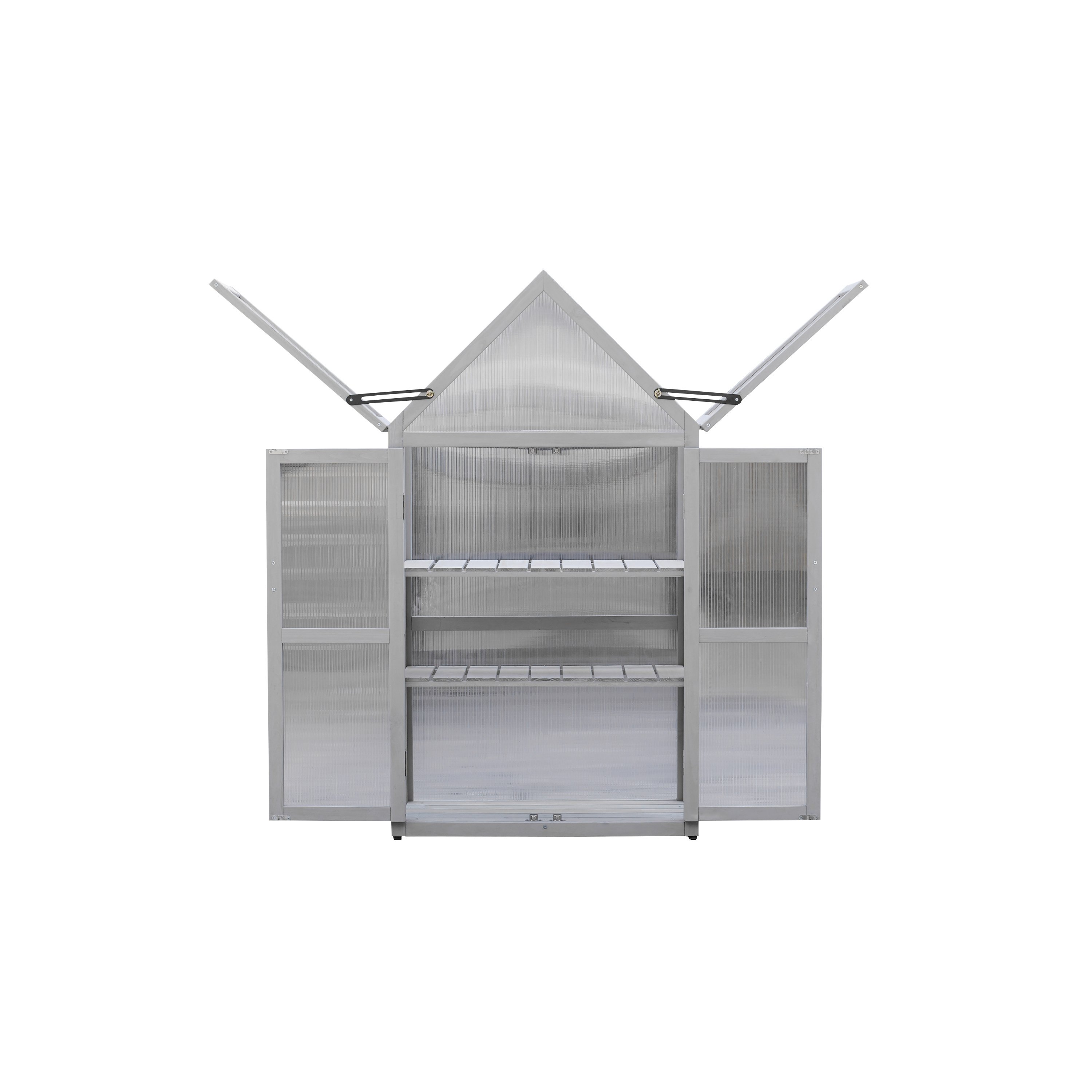1.Our Mini Greenhouse is stylish and would enhance the appearance of any garden, patio, balcony, terrace or even indoors. It is designed especially for those who have limited space to grow your own flowers, seedlings, tomatoes, vegetable or herbs and spices. Made from a naturally durable and impervious cedar species, and stained with a french gray UV-resistant paint.