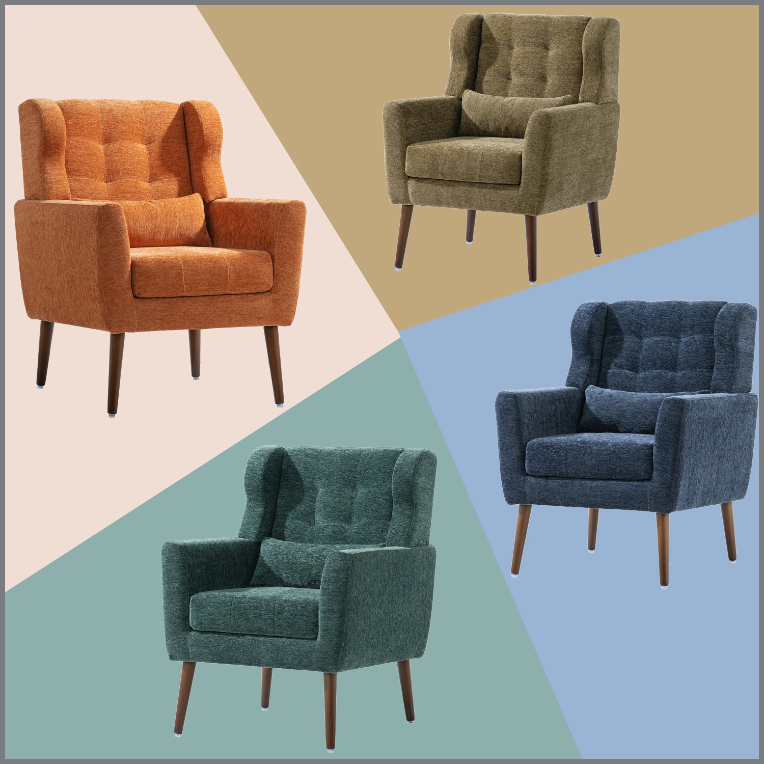 MODERN STYLE:Made of Chenille fabric, this chair's aesthetic appearance design can match the interior decoration system of your home. And our bedroom chair will not be kept out of date for several years. The wood finish is very smooth and soft-touch. Four colors can be selected to add a mid-century style to your room, which is a simple room decoration you can use.