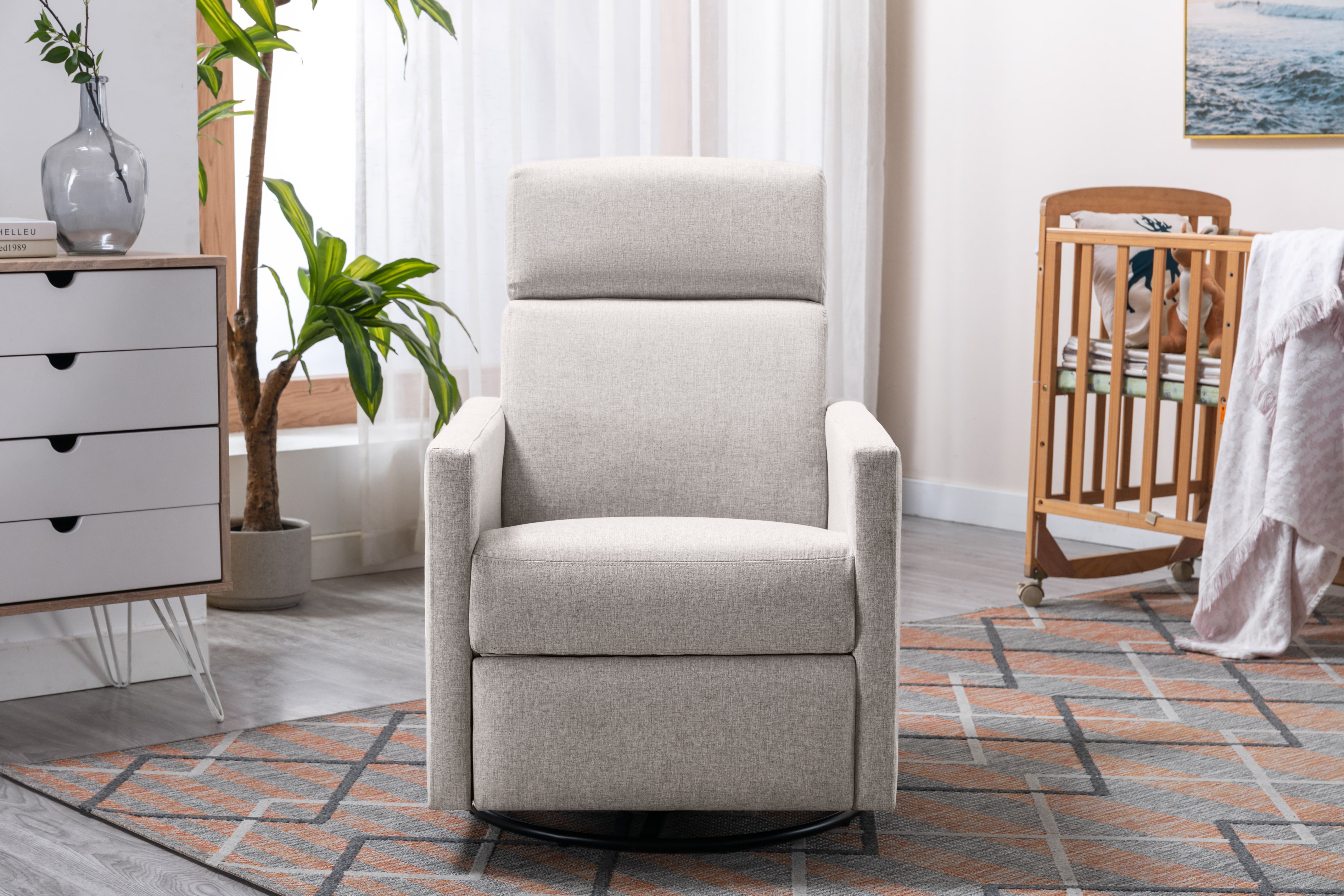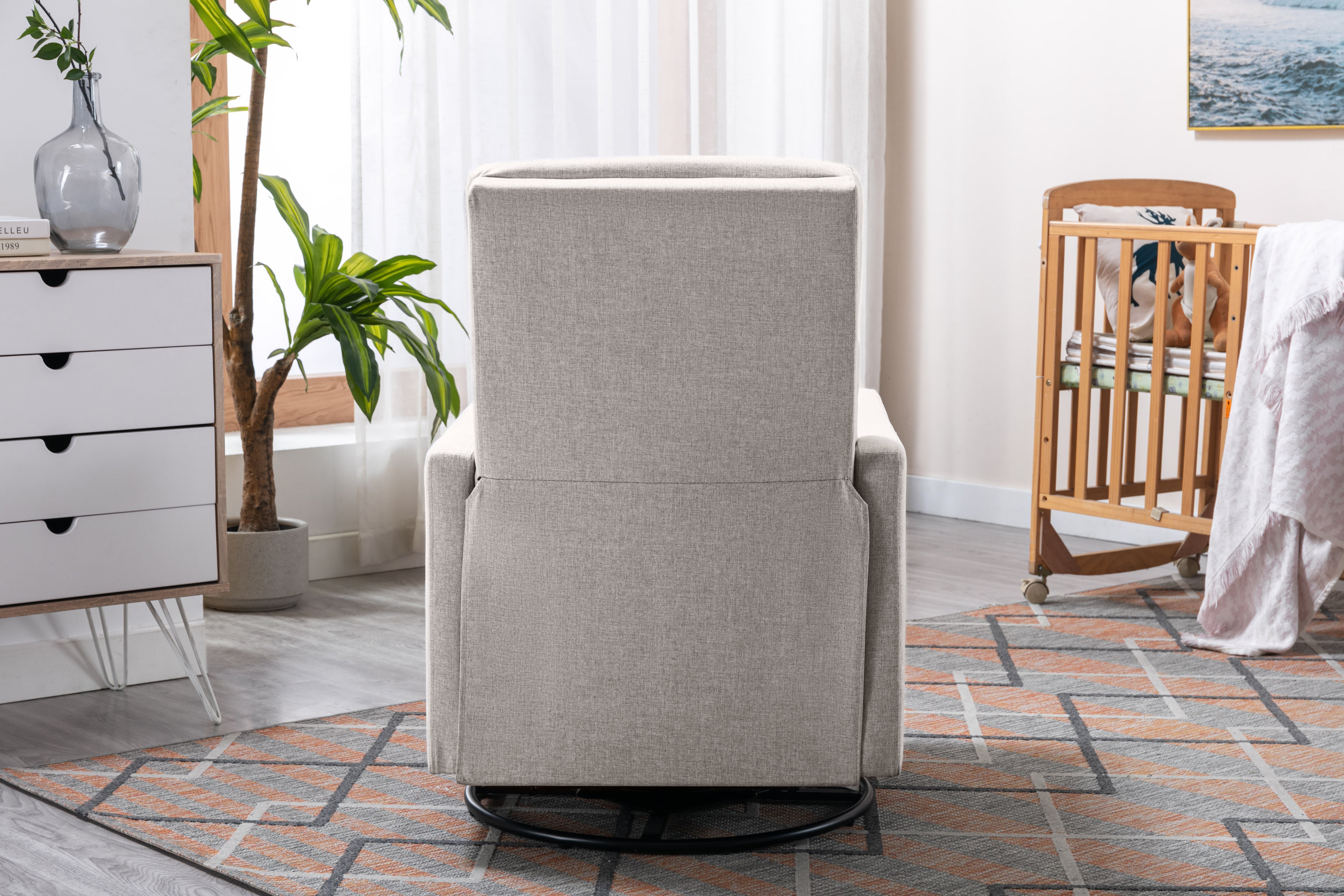 SUITABLE FOR MORE STYLES:With multiple color choices, the Nursery Glider Swivel Rocker Chair is deigned to naturally move from the nursery to the living room, master bedroom, or any other room that needs a cozy spot to relax.