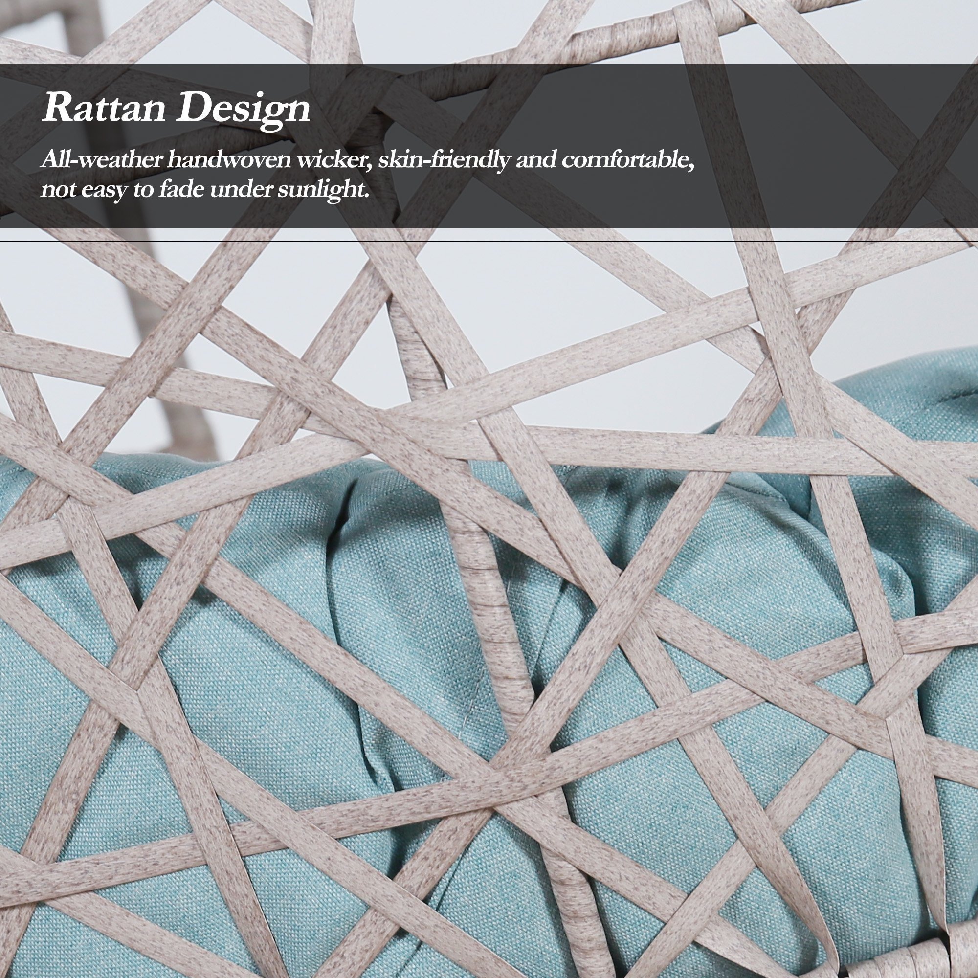 Our outdoor wicker hanging basket chair made from sturdy powder coated steel frame, rust-resistant and durable, guaranteeing long term use. Beautifully wrapped with handwoven premium PE wicker, weather-resistant and UV resistant, bring years of enjoyments. Topped with soft 100% solution-dyed polyester seat cushion and a headrest pillow, high colorfastness and water-resistant, creating ultimate in comforts. The patio wicker hanging chair combined simplicity with modern, boosting the atmosphere of your outdoor or indoor space with stylish charm.