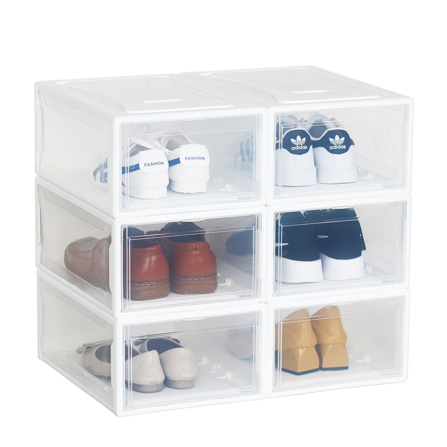 1.Set of 6 Stackable Clear Plastic Shoe Storage Box
