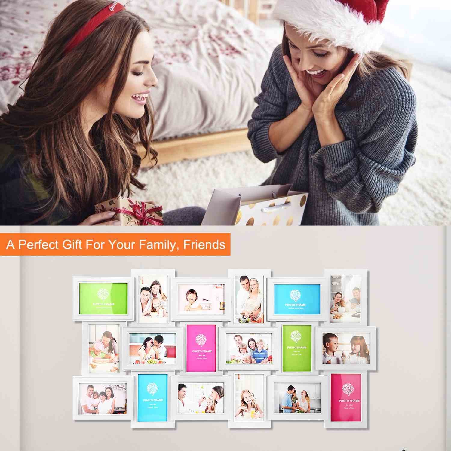 *Multi-Photo Display*:Available in types of 12 openings and 18 openings with different colors(white and black),the picture frame will satisfy all your needs. Designed with horizontal and vertical orientations,you can layout freely and make it in harmony with your home decor. In addition,the picture frames adopts the glass protection display,which clearly show your pictures and safely protect them.
