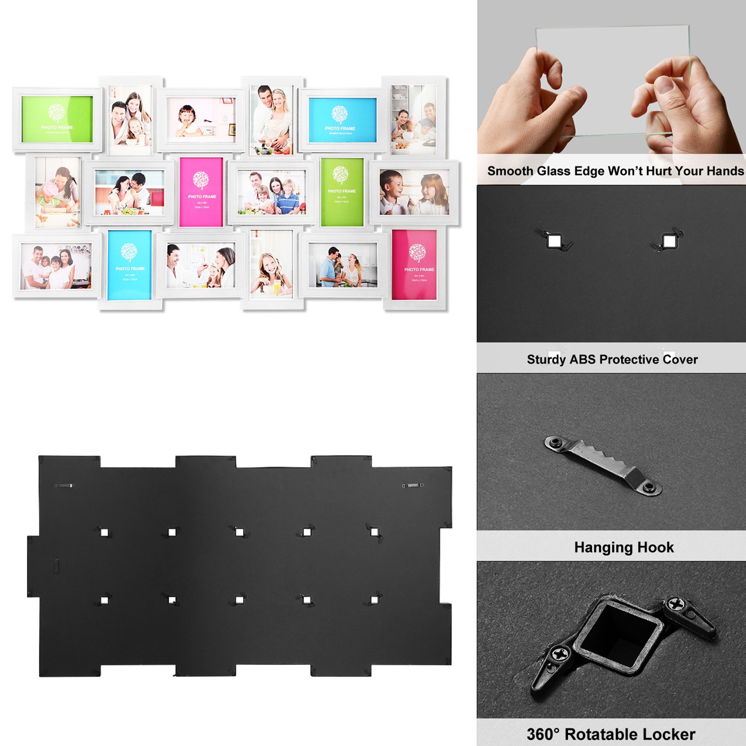 18 Pictures Frames Collage for Photos in 4" x 6" Glass Protection Display Wall Mounting Gallery Home Decor Kit