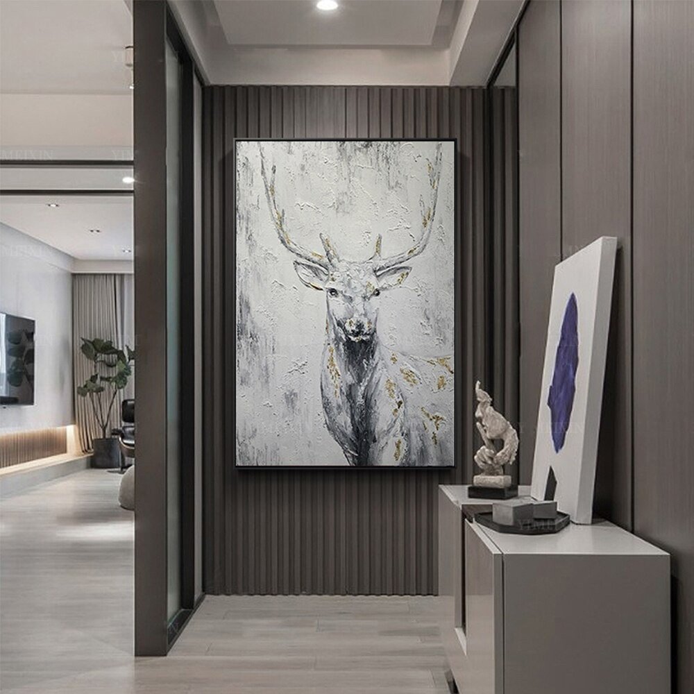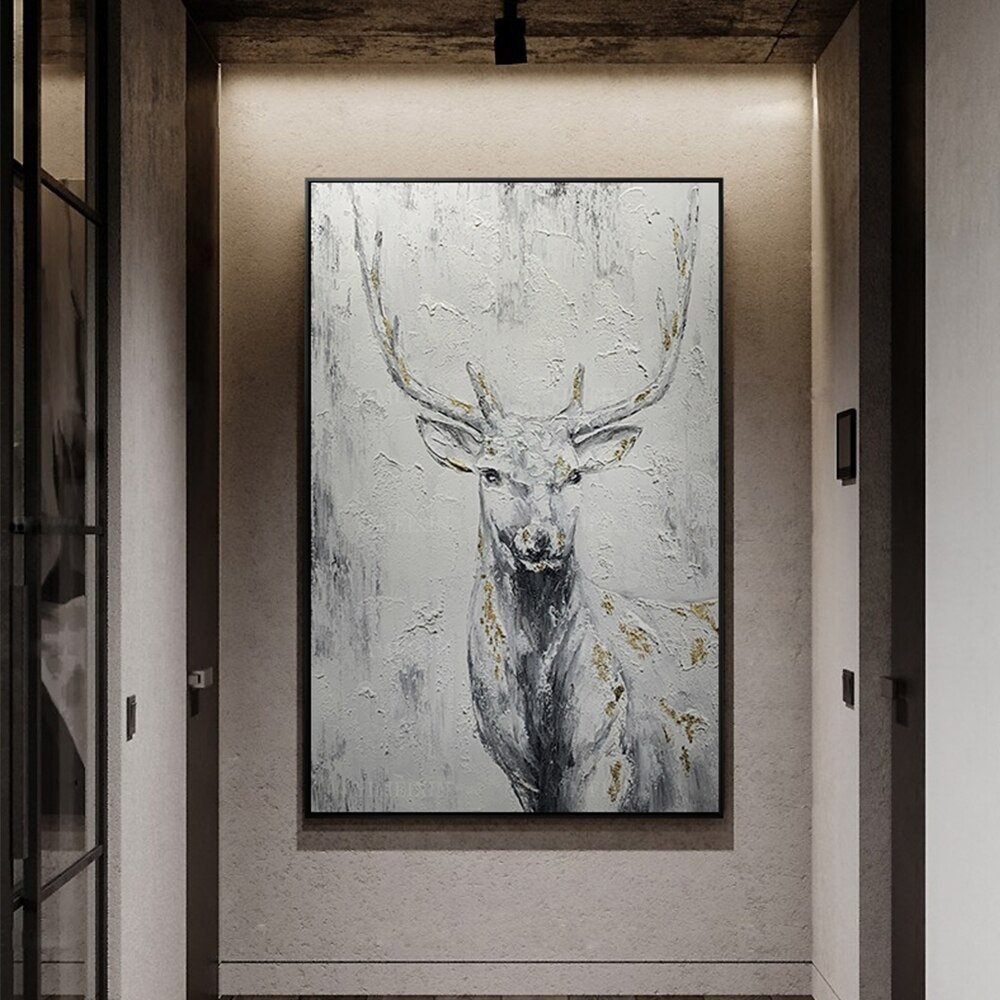 Home > Hand Painted Oil Painting Hand Painted Rich Deer Oil Painting On Canvas Animal Pattern Decorative Painting Classical Porch Mural Handmade Art Living R