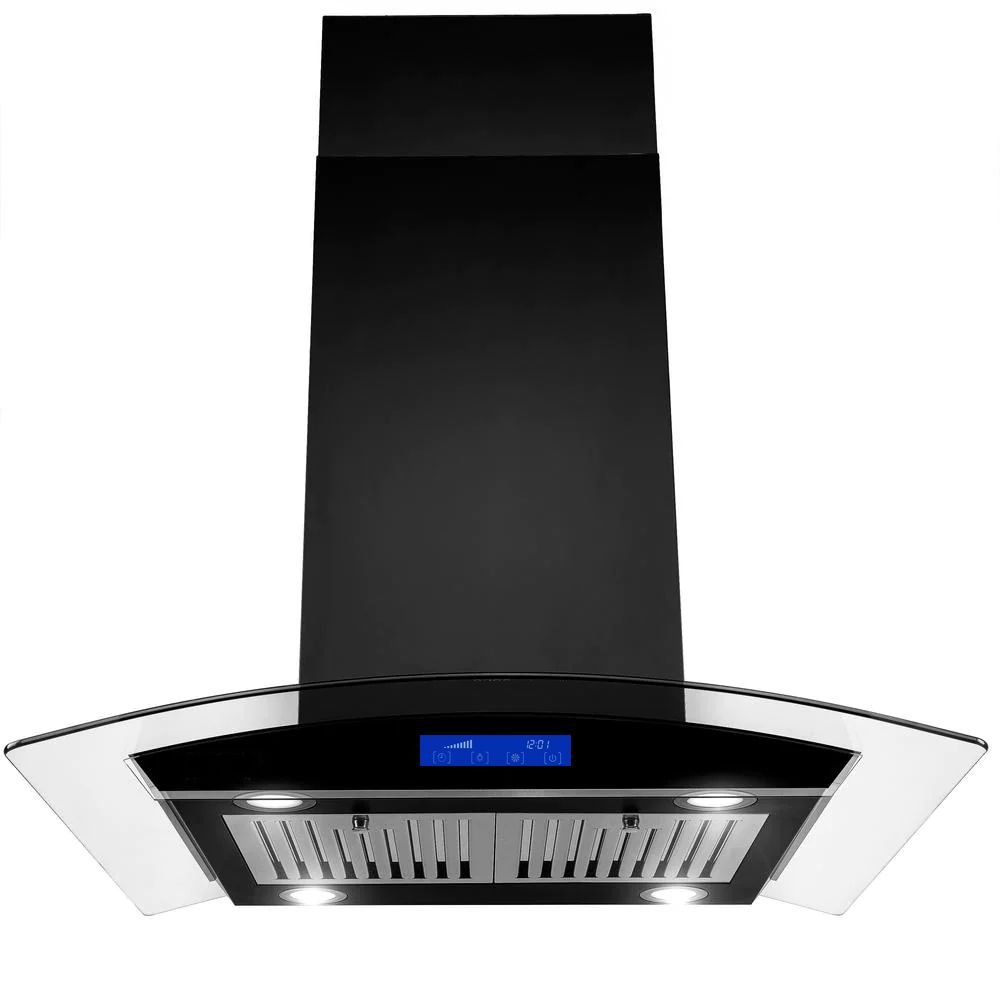 Home > 30 inch Stainless Steel Kitchen Island Range Hood 900CFM Tempered Glass 3 Speed Black LEDs