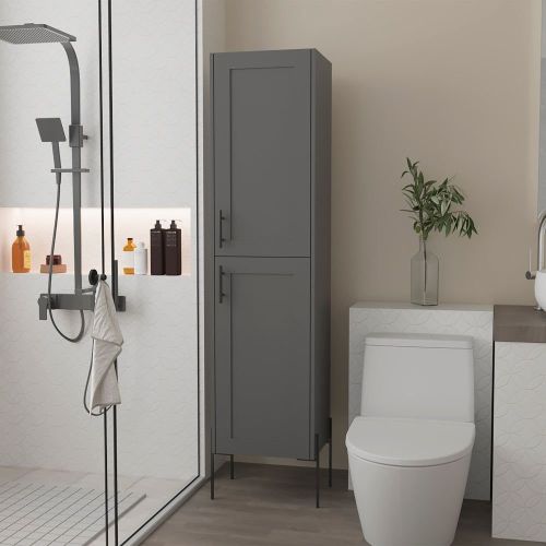 The Linen Cabinet Hopewell is the perfect blend of functionality and modern design for your bathroom. Crafted from durable smoke-finished manufactured wood, this tall cabinet offers ample storage with two superior compartments. The upper cabinet features a superior shelf measuring 14.3"H x 15.5"W and an inferior shelf at 15.6"H x 15.5"W. The lower cabinet mirrors this design with the exact shelf dimensions, providing plenty of space to organize your linens, toiletries, and other essentials. Each door has a sleek metal handle, adding a contemporary touch, while the four sturdy metal legs ensure stability and elevate the cabinet's overall aesthetic.Dimensions: Height: 70.8'Width: 17.7' Depth: 13.9'Furniture Type: Ready to assemble (full assembly required).Certifications: CARB phase II compliant – TSCA Title VI Compliant.Warranty: 1-year warranty coverage in wooden parts- 1-year warranty coverage in hardware pieces since its manufacturing date is found in the lot number printed in the product box.Shipment details: Free shipping to the 48 contiguous states - delivery time: Between 2 and 5 days, depending on the customer's location, season, and weather factors.Other details: This product does not include decorative or background elements; Check that the box is in good condition and well packed and check with the help of the manual that the corresponding parts have been included; For more information regarding warranty, shipment details, cancellations, returns & replacement parts go to the bottom section of our website to learn more; Installation & Assembly Instructions included.