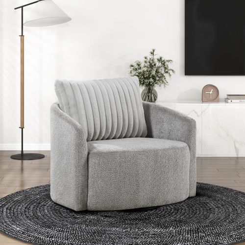 Modern Sleek Design Swivel Chair Cushion Seat Soft Gray Chenille Upholstered Plush Back Pillow Living Room Furniture 1pc