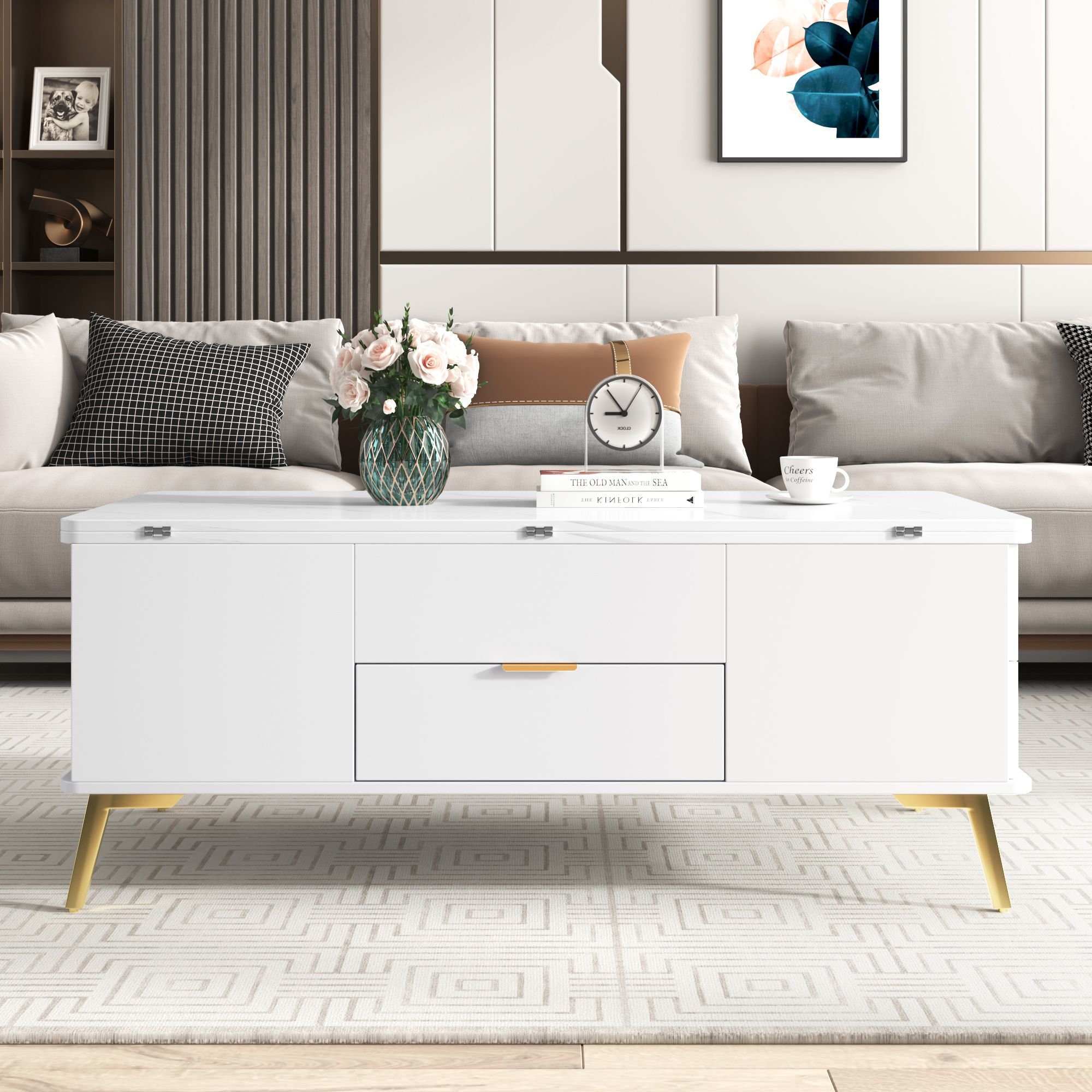 Modern Lift Top Coffee Table Multi Functional Table with Drawers