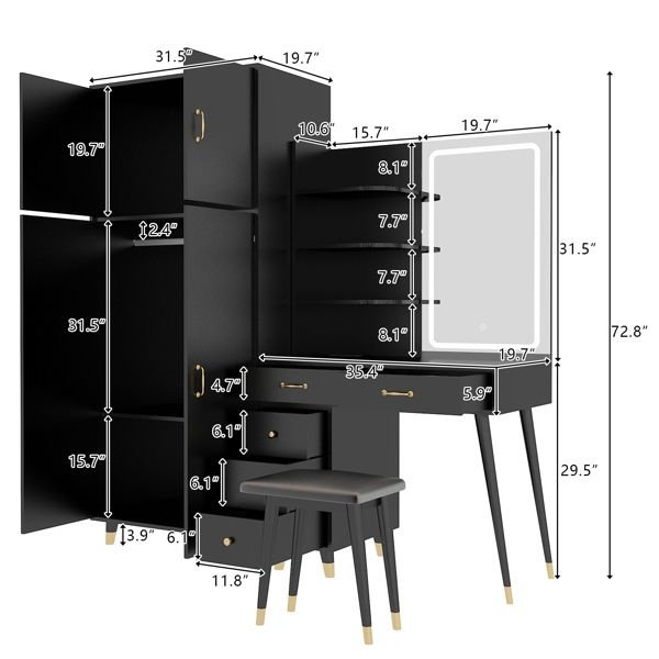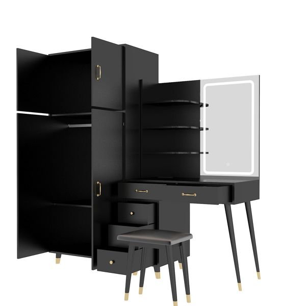 Makeup Vanity Table and Large Armoire Wardrobe Set, Dressing Table with LED Mirror and Power Outlets and 5 Drawers, 4 Door Bedroom Closet, Black Makeup Vanity Table and Large Armoire Wardrobe Set, Dressing Table with LED Mirror and Power Outlets and 5 Drawers, 4 Door Bedroom Closet, Black Makeup Vanity Table and Large Armoire Wardrobe Set, Dressing Table with LED Mirror and Power Outlets and 5 Drawers, 4 Door Bedroom Closet, Black Makeup Vanity Table and Large Armoire Wardrobe Set, Dressing Table with LED Mirror and Power Outlets and 5 Drawers, 4 Door Bedroom Closet, Black Makeup Vanity Table and Large Armoire Wardrobe Set, Dressing Table with LED Mirror and Power Outlets and 5 Drawers, 4 Door Bedroom Closet, Black Makeup Vanity Table and Large Armoire Wardrobe Set, Dressing Table with LED Mirror and Power Outlets and 5 Drawers, 4 Door Bedroom Closet, Black