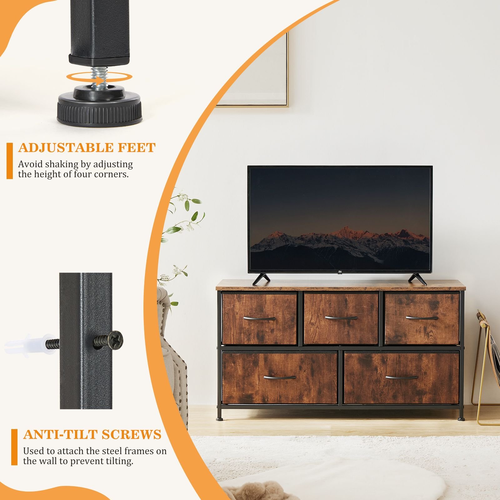 Sweetcrispy Dresser for Bedroom Storage Drawers Fabric Storage Tower with 5 Drawers, Chest of Drawers with Fabric Bins