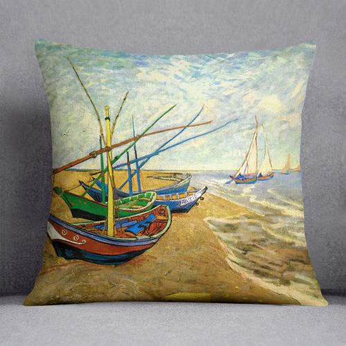 Fishing Boats on the Beach at Saintes-Maries by Van Gogh Cushion