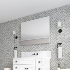 24'' W x 36'' H Bathroom Mirror Medicine Cabinet - Wooden Door Medicine Cabinets for Bathroom, Wall Mounted Recessed or Surface