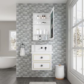 LEDE 48" Bathroom Vanity with Vessel Sink, Wall-Mounted Floating White Rectangular Acrylic Integrated Basin without Faucet, Striped Shelves Layer