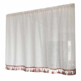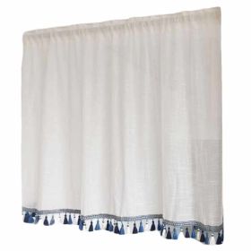 Semi-Sheer Cafe Curtain Tassels Short Kitchen Curtain Half Window Curtain Bedroom Curtain, 57x24 inch