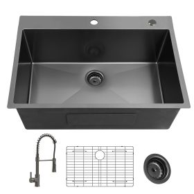 33Inch Topmount 18Gauge Stainless Steel kitchen Sink With Black Spring Neck Faucet