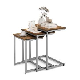 Round Coffee Table Set of 2, Nesting Coffee Tables for MDF with veneer .for living room,office,bedroom,Natural, 4Colors WHITE