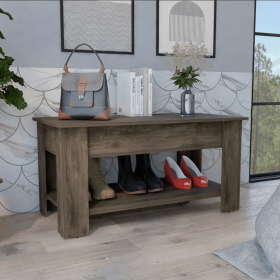 TREXM Retro Multifunctional Storage Bench with Cushion and Curved Side Panel for Entrance and Living Room (Espresso)