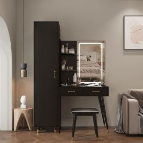 40 inch Makeup Vanity Desk with 3-Mode Lighted Mirror & Wireless Charging Station,Vanity Table with Drawer & 3 Open Shelves for Ample Storage Space (Material: MDF+Iron, Color: Black)
