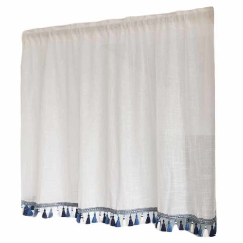 Home > Semi-Sheer Cafe Curtain Tassels Short Kitchen Curtain Half Window Curtain Bedroom Curtain, 57x24 inch
