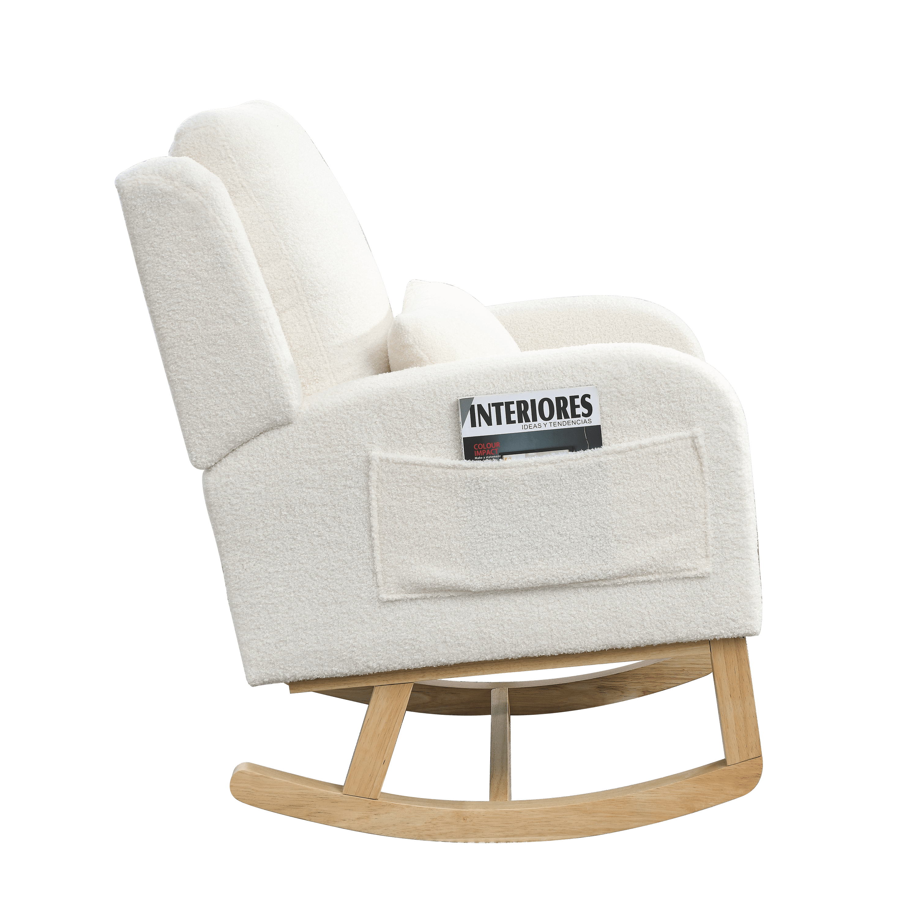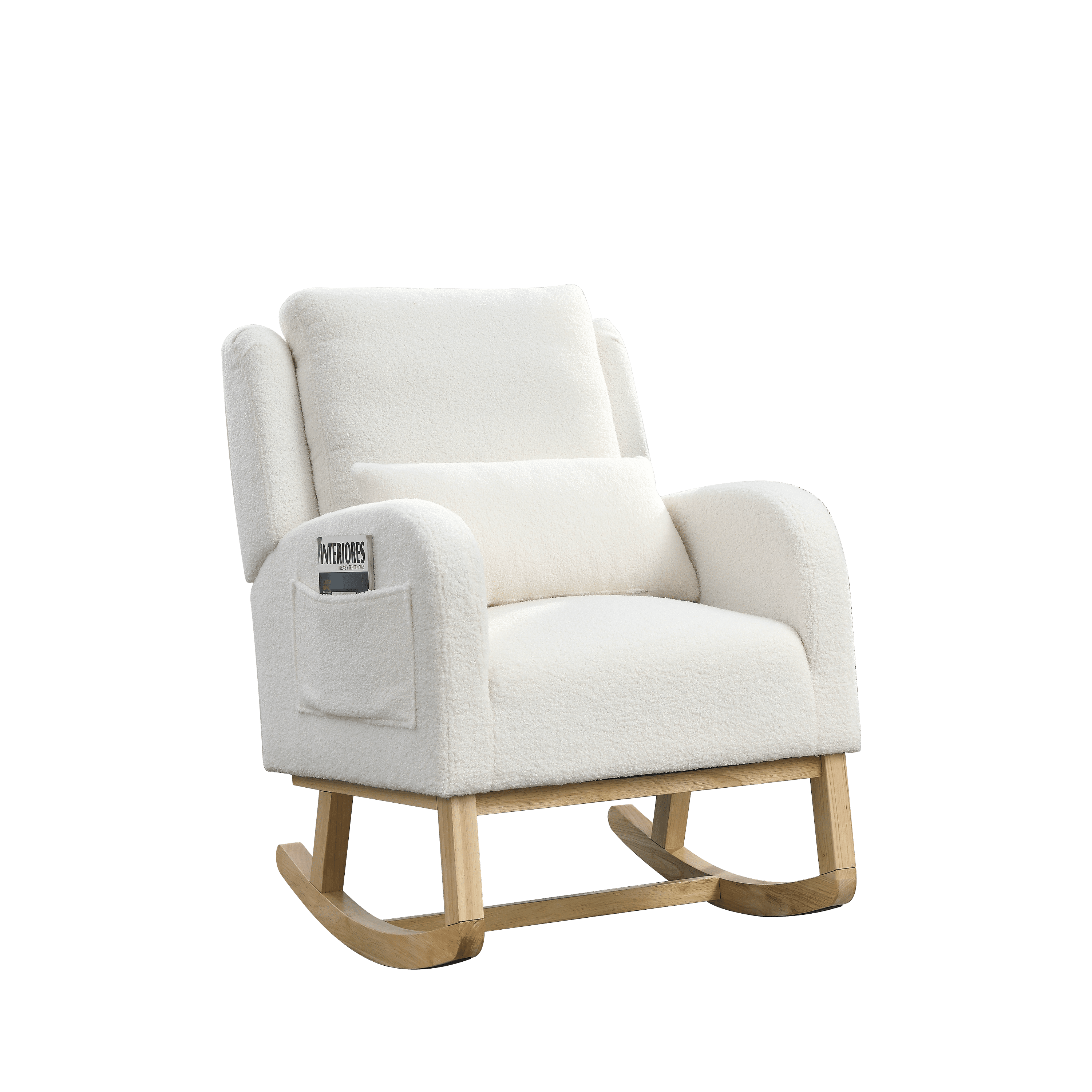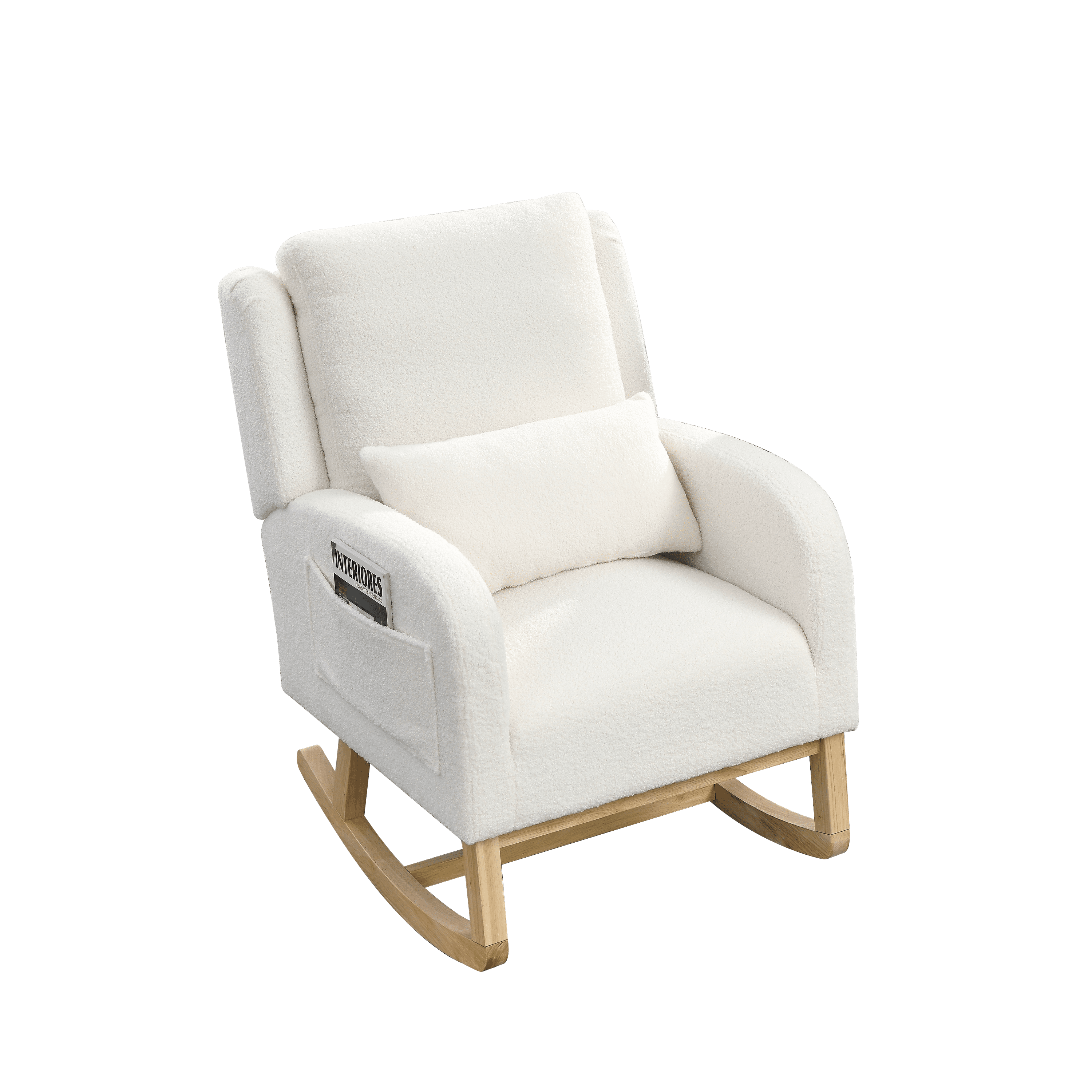 Home > [Video] Welike 27.5 "W Modern Accent High Back Living Room Casual Armchair Rocker with One Lumbar Pillow, Two Side Pockets,Teddy White (Ivory)