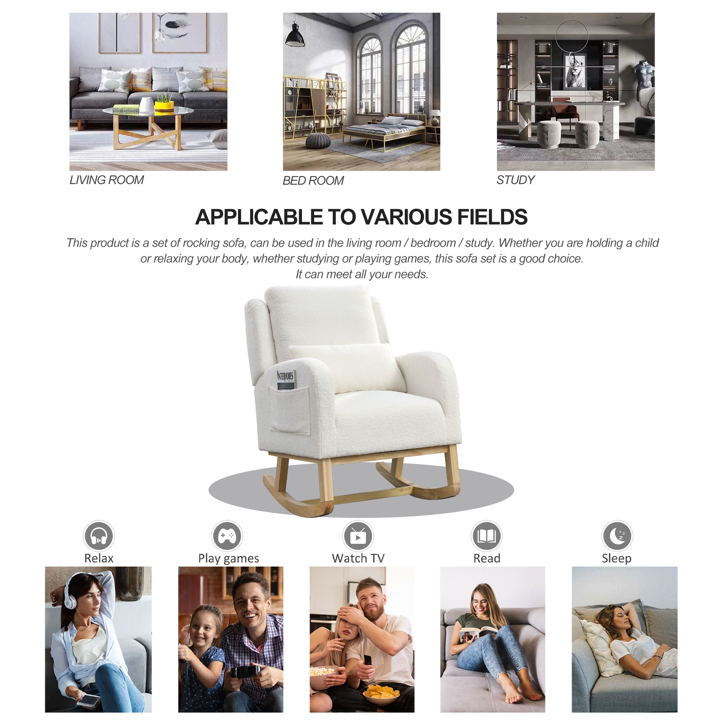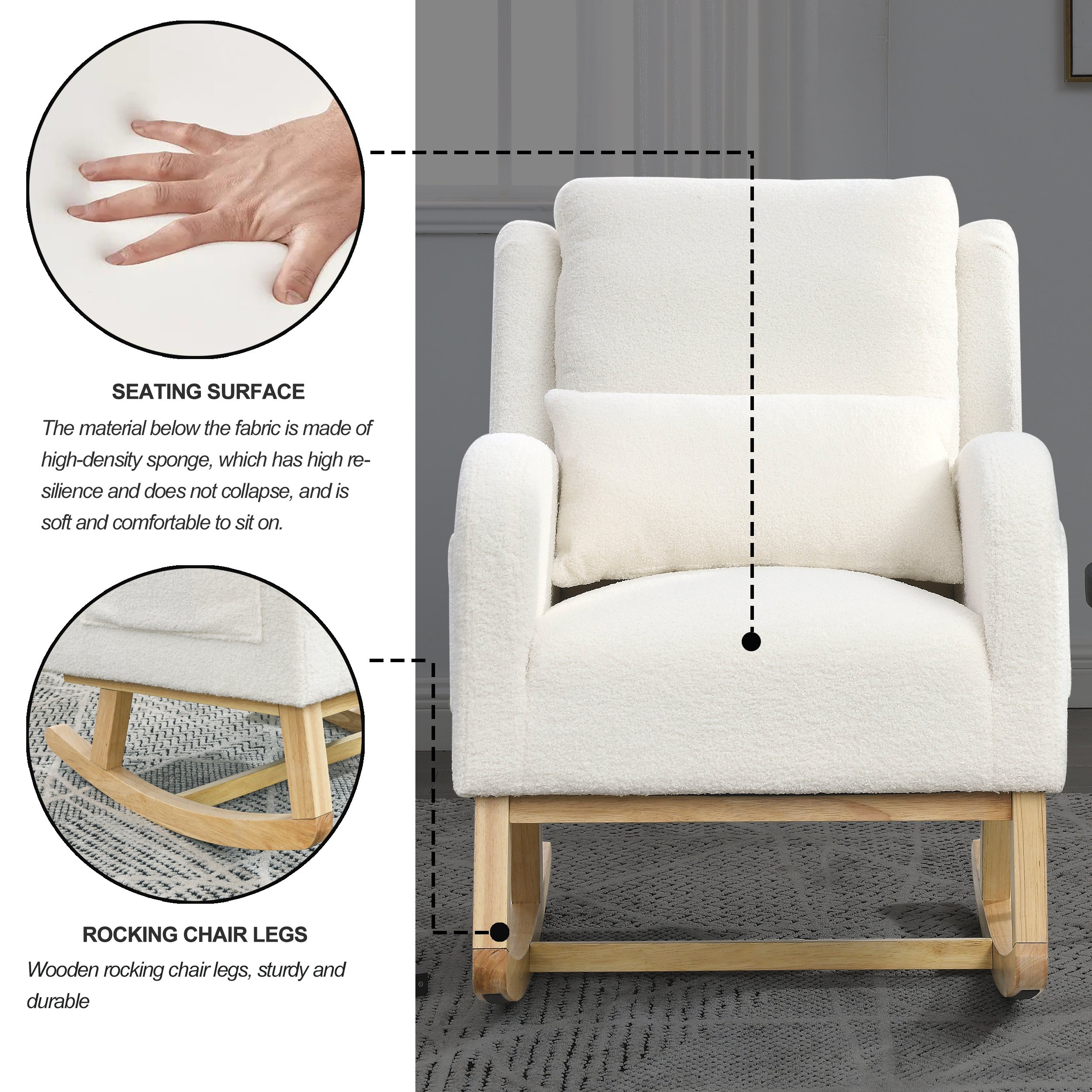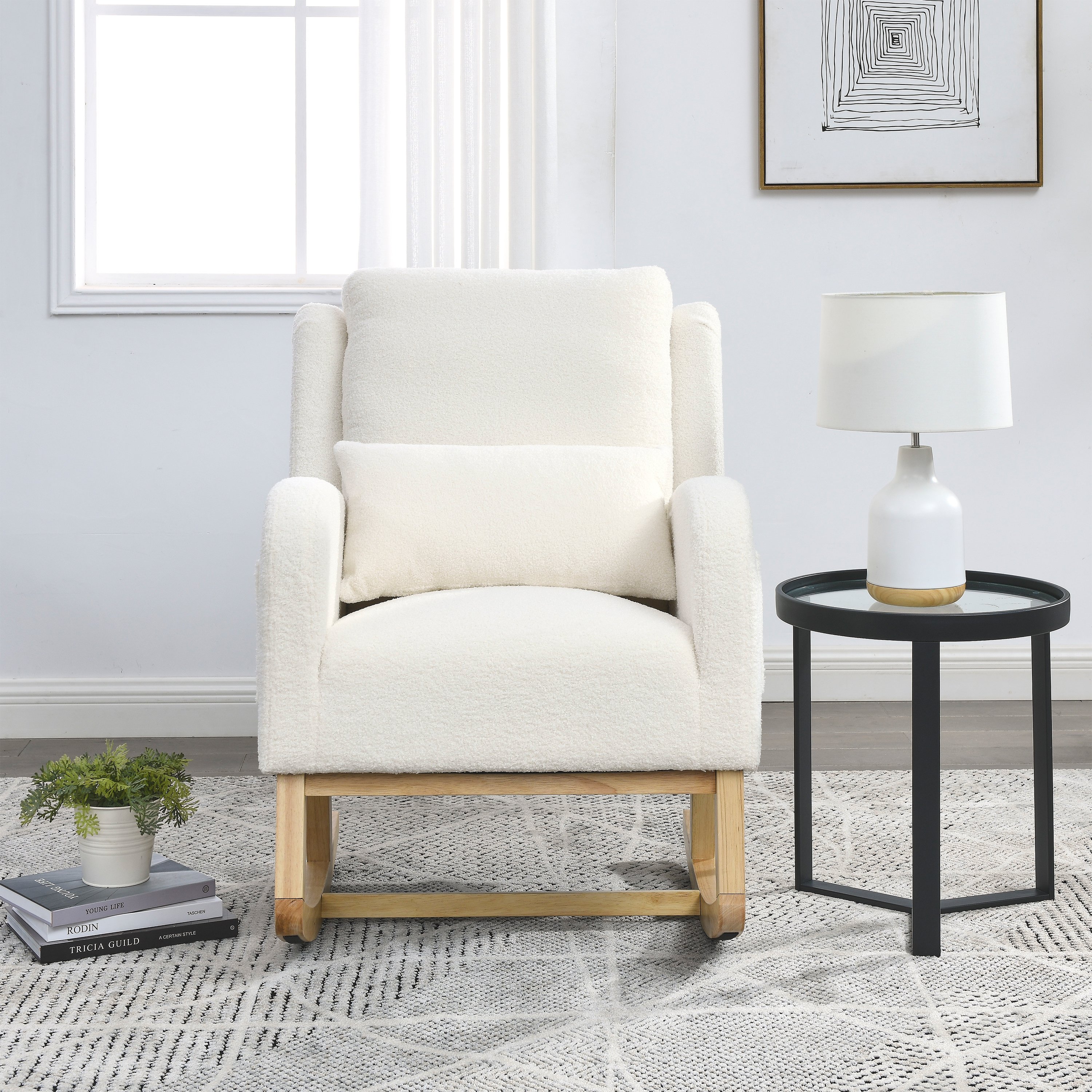 Home > [Video] Welike 27.5 "W Modern Accent High Back Living Room Casual Armchair Rocker with One Lumbar Pillow, Two Side Pockets,Teddy White (Ivory)