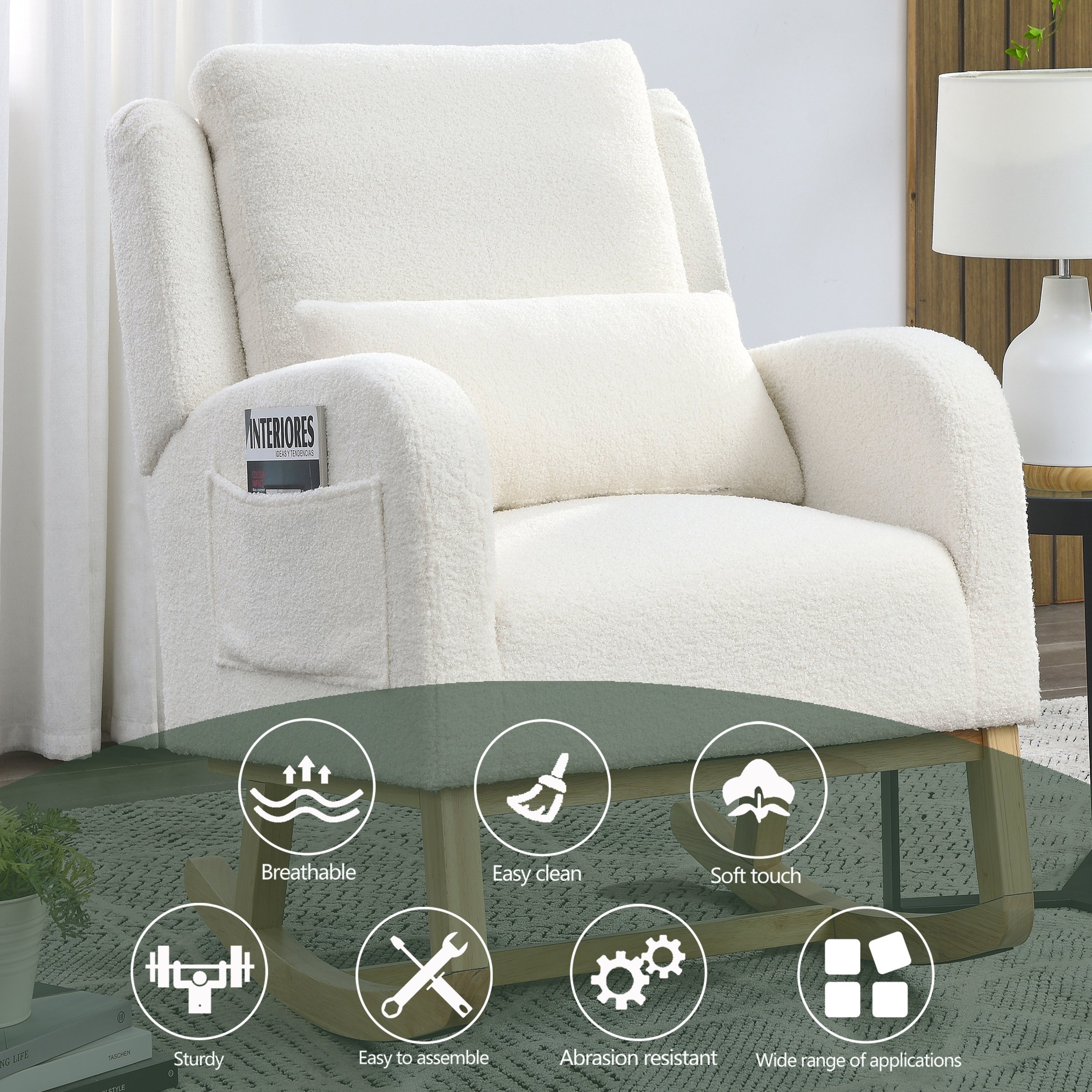 [Video] Welike 27.5 "W Modern Accent High Back Living Room Casual Armchair Rocker with One Lumbar Pillow, Two Side Pockets,Teddy White (Ivory)