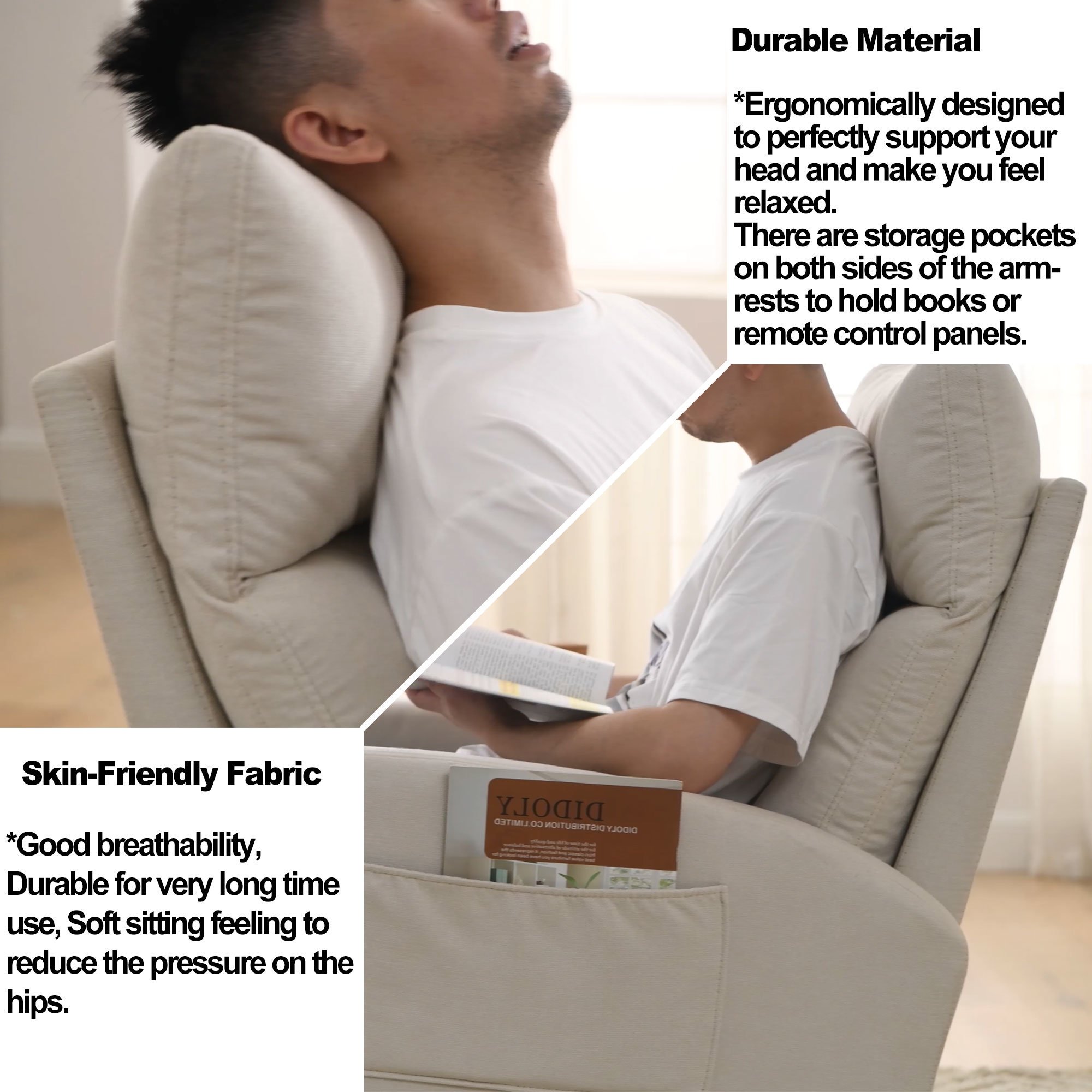 ★[Stylish design and practical pockets] The modern design and smooth lines make this children's rocking chair very stylish and chic. What's more, there is a large pocket on the side of each armrest, which is convenient for you to place magazines and TV controllers. It's a great choice for lazily slapping the pages of a book or sipping a cup of coffee!